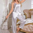 ✨ Ensemble Pyjama Satiné 2 pièces – Débardeur à Dentelle & Pantalon Long (Blanc) ✨