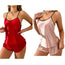 Cet ensemble glamour et confortable est composé d’un débardeur satiné à fines bretelles avec un superbe dos en dentelle papillon, accompagné d’un short assorti ultra léger.
